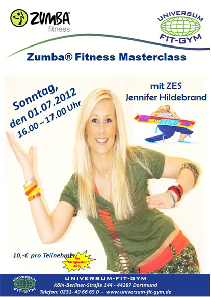 Zumba Fitness Masterclass mit ZES Jennifer Hildebrand So., 01.07.2012, ab 16h-17h >>> Lesen Sie Mehr